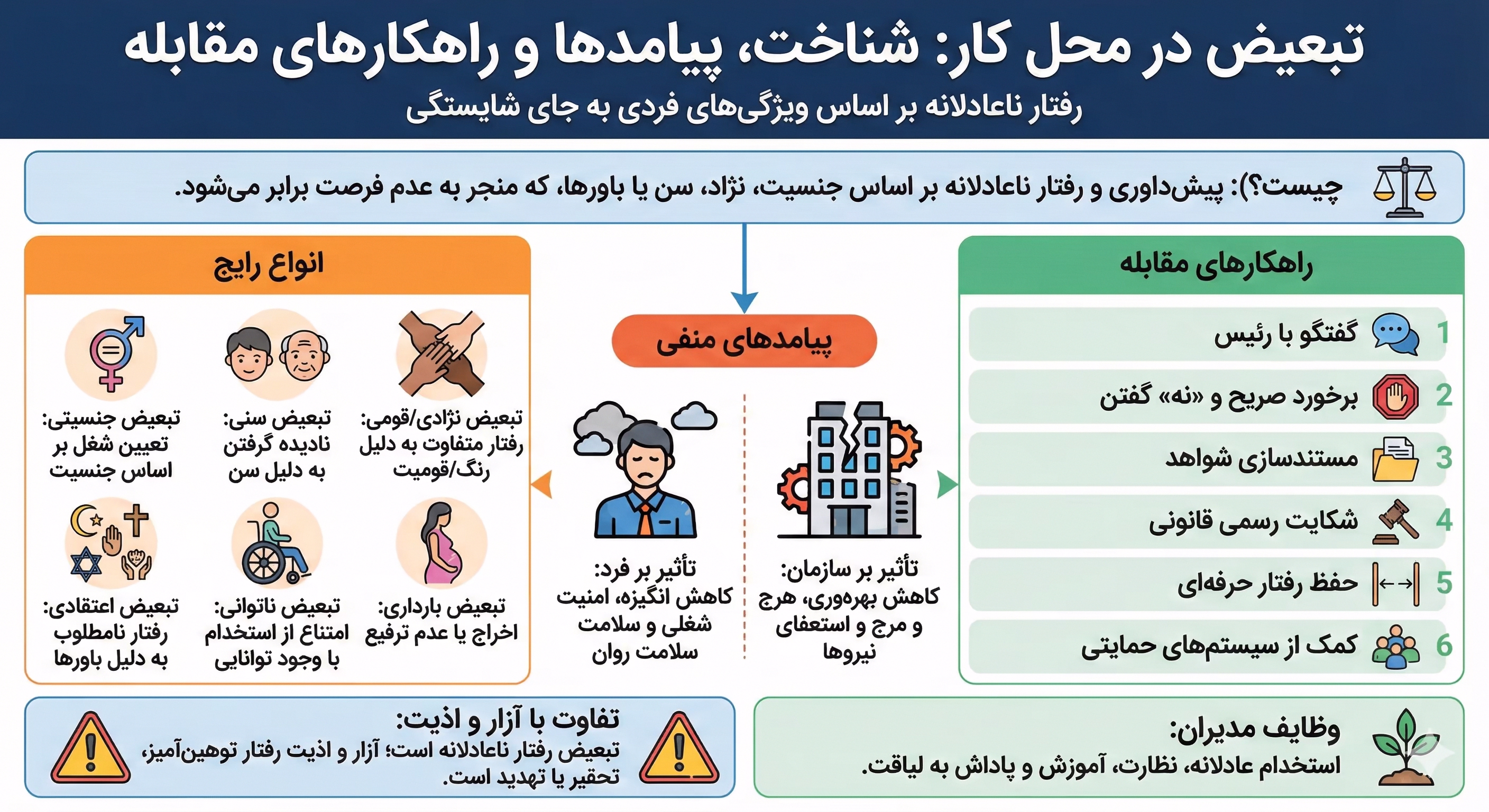 😟 یکی از معضلاتی که متأسفانه باعث ایجاد حس منفی و آزاردهنده در محیط کار میشود، «تبعیض» است. 🚫